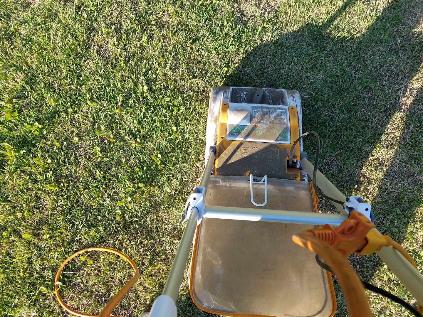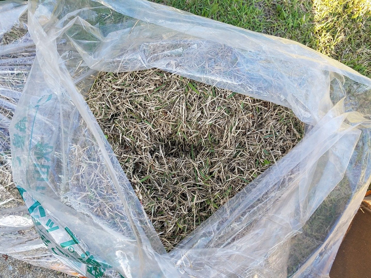 新しい芝が育つのを邪魔する古い枯れた芝生を取る作業なんですが、