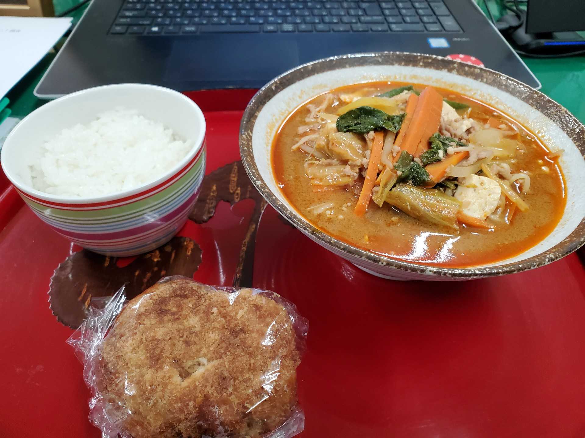 しばらくご飯だけ味わってから、担々鍋とコロッケを頂きました(笑)