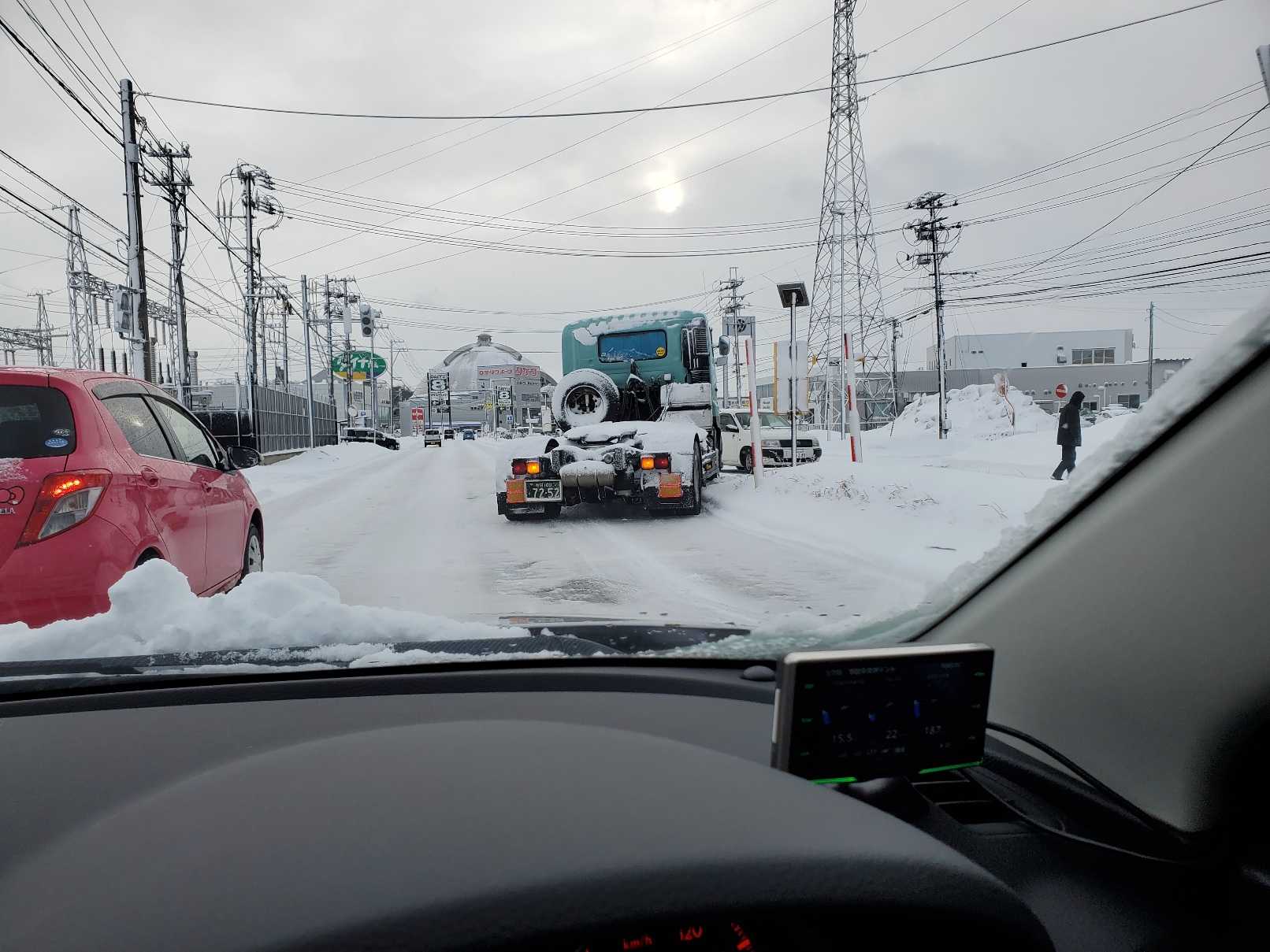 場所によっては、かなり降ったようです~~。除雪が間に合ってない…。