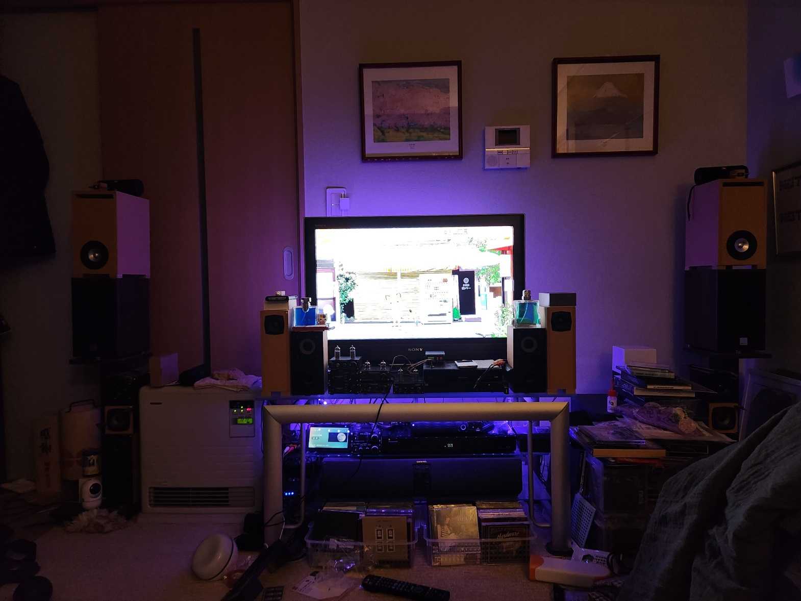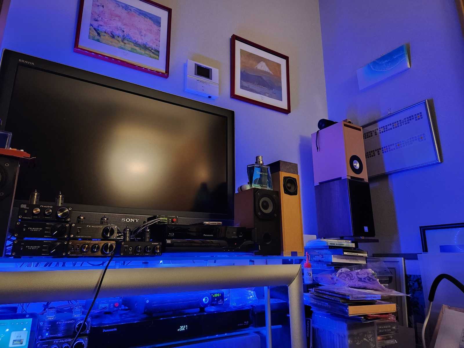 手前のスピーカー、形は小さいのですが、結構なボリュームで鳴ってます。いいわ~~(笑)