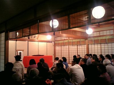 これは、羽村市の地域寄席である「ゆとろぎ寄席」の番外編として開催されたものです。通常の「ゆとろぎ寄席」は、出演者が真打ちを含めていつも3人から4人なのですが、番外編の「ヽ五会」(てんごかい)は、若い二つ目一人に限定するそうです。きょうの出演者は、柳家ほたるさん。会場で受け取ったプログラムには下記のように書かれていました。「ヽ五会」(てんごかい)とは、二つ目の噺家さんには経験を積む勉強会の場として、お客様には若手を育てる喜び(?)を感じていただき、ますます落語好きになっていただこうと実施するものです。定例の「羽村ゆとろぎ寄席」とはちょっと異なります。二つ目さんの独演会なのです。うまくできたらご喝采、ちょっとコケても、そこはそれ、あたたかい目で見守り、励ましてあげて下さい。 きょうの演目 「転失気」 「牛ほめ」 「お菊の皿」「お菊の皿」は、柳家ほたるさんにとっては、初めてお客の前で演じる「ネタおろし」とのことでした。企画したTさんが、開演前の挨拶で「飯能で開催されている有望若手応援寄席のやり方を真似してみました」と言ってくれていましたが、私としても、一般の人が、地域寄席を無理なく立ち上げて、着実に続けていくには「若手の二つ目に独演会で3席たっぷりやってもらう」形式が一番良いのではないかと思っています。終演後、奥さんが向けたカメラに「お菊のポーズ」でサービスしてくれた柳家ほたるさんです。