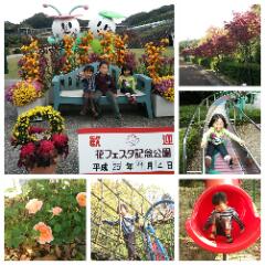 先日ラジオ番組に応募したら招待券が当選しました。せっかくなので行ってきました。秋は春ほどは咲かないからかちょっと寂しげ・・・薔薇と紅葉子供達はアスレチックコーナーでいっぱい遊んで満足したようです。また来年行こうね!