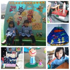 今日は幼稚園の作品展。ゆうくん&ほのちゃんの作品を見に行ってきました。頑張って作った壁作品、絵、工作。どれも自信作だね。ul style="list-style:none;">全体の作品は未来の幼稚園。ゆうくんの隣にほのちゃんが置いてあってかわいかったです。作品を見たあとは園庭でうどん、おでんなどのバザー。どれも美味しかったです。たっくんも一緒にのんびりしました。