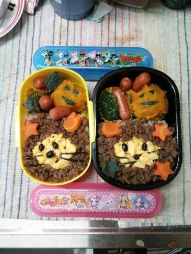 幼稚園の秋の遠足。そぼろでライオン風にしてみたのですが食べる頃には傾いて何か分からなかったそうです。残念。ちゃんと食べてくれて良かった。