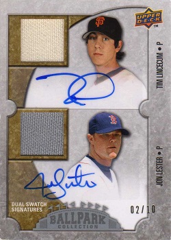 09 UD Ballpark Collection Dual Swatch Signatures #DD-LL Tim Lincecum / Jon Lester /10 |