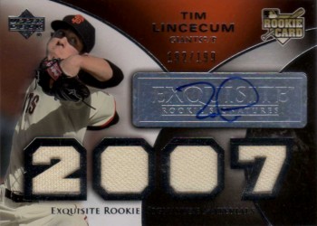 | 07 UD Exquisite Rookie Signatures Exquisite Rookie Signature Materials #163 Tim Lincecum /199 |