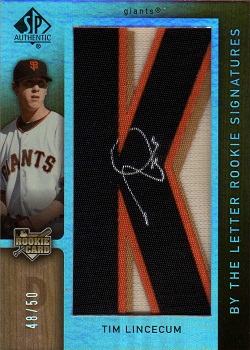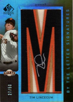 | 07 SP Authentic By The Letter Rookie Signatures #147b Tim Lincecum /50 |