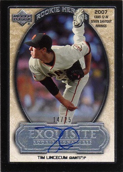 | 07 UD Exquisite Rookie Signatures Rookie Heroes Autographs #TL3 Tim Lincecum /25 |