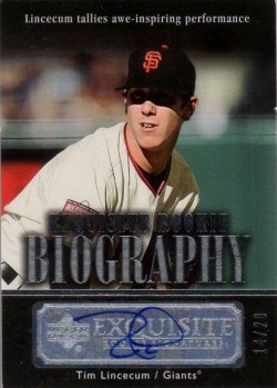 | 07 UD Exquisite Rookie Signatures Exquisite Rookie Biography #ERB-TL Tim Lincecum /20 |