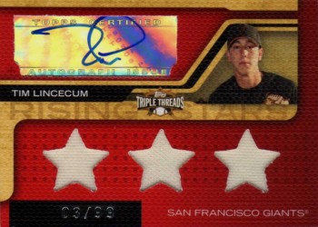 08 Topps Triple Threads Rising Stars Relic Autographs #172 Tim Lincecum /99 |