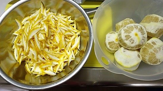 柚子の白い皮を出来るだけぎりぎりまで剥いて使います
