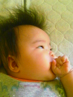 朝からなんとな~く食欲のなかったことちん。いつもの半分~三分の一くらいしかミルクを飲みません。で、夕方・・体が熱いような・・?と熱を測ったら37.7℃やっぱりという感じで発熱しちゃいました。1月2日から2泊パパの実家へ行っていたので疲れが出たのかも・・。場所見知りがすごくて2時間半ぐらい泣きっぱなしだったんですよ。私以外が抱くと駄目で・・。パパでも一人抱っこして泣き止ませてる間にもう一人が泣く・・・エンドレス地獄でした帰ろうかと思ったら結局二人とも一眠りして諦めが?ついたようでその後は大丈夫でしたがこれで発熱は3回目ですが食欲がなくなるのは初めて。心配です・・。これ以上熱が上がらなければいいのですが・・・とりあえずまだ笑う元気はあるようです・・・