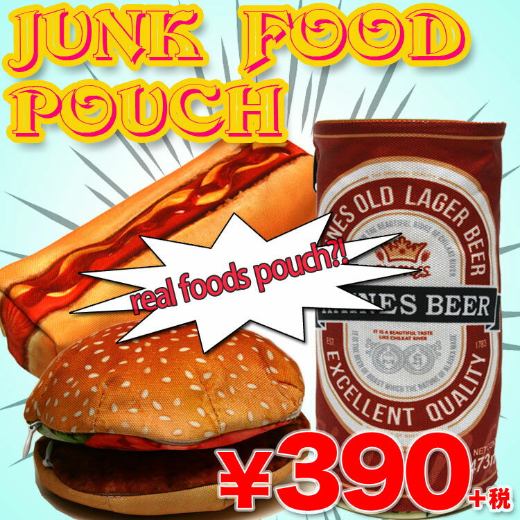 思わず食べてしまいそう・・・ メール便OK!1通180円ジャンクフードポーチ 3デザインおもしろグッズ 小物入れ ペンケースに♪