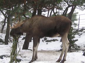 フィンランド旅行の道中、よーーーくよくよく見てみれば、野生のヘラジカやトナカイにお目にかかれたはずなのに、昔から車酔いのひどかったわたしは子どもの頃から車に乗れば寝てしまう習性がしっかり身についていて、エンジンがかかればすぐ寝てしまう。Patrick が「ほんとにヘラジカやトナカイが見たいんだったら起きてなきゃだめ」というのも意に介さず。それでも、帰国間近なわたしにホンマもんのヘラジカを見せたかったらしく、この日は Patrick がヨーテボリ市内の動物園に連れて行ってくれた。動物園といっても上野動物園とか、ちゃんとしたのを想像するとかなり違うもの。子ども動物園、に感覚的には近く、トロピカールな動物はオウムぐらい。ゾウやライオンももちろんいない。それでもアザラシがいたり、ペンギンがいたり。なぜかペンギンと一緒の水槽にペリカンがいた。・・・どういう組み合わせ?? 不思議だ。。。^^;冷たい雨の降る中、急な坂道をのぼりくだり、ようやくお目当てのヘラジカに会えました。moose こっちでは elk と呼ぶのが一般的みたい。でっでっでっでっ、でけーーーー!!!!この写真がよくわからないかもしれませんが、ワゴン車くらい、かるーーーくありますよ!!!!・・・車に乗ってて、こんなんとぶつかった日には間違いなく死にますわ。聞いたところによると、足長美脚(??)なものだから車とぶつかったときには脚がやられて、本体がボンネットに乗っかって、そのまんまあの巨体がまるごと運転席に飛び込んできちゃうそうです。しかもあのツノが運転手や助手席の人に刺さることもあるとかで。。。。うわー。。。。T_Tあんまりうまく撮れた写真がないのだけど、この写真の方が、デカさ加減がわかるでしょうか??なんと、Patrick のご一家もあやうくコイツを車で轢きそうになったことがあり、あわてて急ブレーキをかけてなんとか目の前で止まれたことがあるんだって。こわーーー。。。。。T_Tこんなのが実際に山の中にいるわけね。エコロジーの授業で聞いたけれど、このヘラジカの頭数制限もなかなか悩ましいらしい。こんな巨体だもん、いっぱい食べるからね、他の動物の食べ物がなくなっちゃうし。ヘラジカ頭数制限については、このあたりのサイトに詳しく書かれています。http://www.swedenalacarte.se/Hunting%5CSveaskoginterview.htmhttp://www.ecology.or.jp/sweden/0311.html↑このサイトはとてもわかりやすく書かれていてオススメ。フィンランド旅行中には、ヘラジカやトナカイ料理も口にしました。Patrick の伯母さんのところでは朝食にヘラジカの燻製ハム、行き帰りのフェリーではトナカイの煮込み料理、ビーフストロガノフによく似た料理があって、どちらもおいしかったです。「(赤鼻の)ルドルフの友達を食べちゃって、ひどいなぁ~」なんて Patrick に言われてしまいました。とはいえ、その土地の料理だし、季節の恵み、ということで納得して、ありがたく残さずいただきました。・・・・って、アンタだって同じもん食べとるやん!!!!プンプン(○`ε´○)