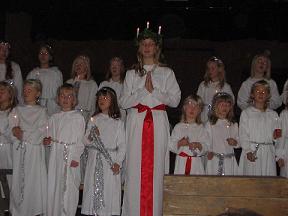 今日はスウェーデンの年中行事のひとつ、ルシア祭の日です。この写真は昨年 Kerstin に連れてってもらったクリスマスマーケットのときの Lucia Celebration。冬至の夜のいちばん長くなる日に光の聖女ルシアが降臨する日です。これから少しずつ日が長くなっていくのを祝うもの。ルシアとお供の子どもたちが ♪サンタ~ルシア~♪からスウェーデンのクリスマスソングなどなどを歌ってくれます。子どもたちがめちゃめちゃかわいかった♪これはルシア祭のときに食べるルッセカット(lussekatt)というサフラン入りのパンです。名前の由来は諸説あるようですが、ひとつにはこの独特の形とレーズンが猫みたいに見えるのでルッセカット(katt は猫のこと)と呼ばれているのだとか。そして我がコリドーでもルシア祭があります。ところが。。。男女平等はなぜかここだけ妙な形で生きていて。。。。昨年は野郎による野郎のためのルシア祭でした。。。。。。。。。。。。(汗)衣装がないのでどっからか白衣を人数分調達して、みんな生足で着ていました。。朝早くにルシアの歌を歌いながら女の子の部屋を訪れます。半分近くの女の子は入れてくれなかったみたいだけど、わたしはいつ来るのか楽しみで夜遅くまで起きてて朝早く目を覚まして、部屋の鍵を開けて待ち構えておりました。やってきた彼らを見てげらげら笑っちゃったけど(失礼)かわいいといえばかわいいかもしれないけどどっちかというとやばめ。。。。^^;;;;;ルシア役の彼はどっちかというと牛の刻参りでは。。。こわっ!!!女の子の部屋をまわったあと、妙に勢いづいたかあの格好のまま寒風吹きすさぶバルコニーに出て、すんごい大音量で歌うたってがははと笑いながら戻ってきました。ちなみに下の赤い帽子の2人組はトムテ役。サンタクロースのアシスタントです。ルシアのときにはグロッグというレーズンとアーモンドを入れて飲むホットワインとジンジャークッキーを配ってくれました。それが今年は残念ながらコリドーでのルシア祭は流れてしまったようです。ほんとうは女の子がルシア祭をやる当番だったのだけど、このところコリドーの入れ替わりが多くて、女の子はみんな新しく来た人たちばっかりだったし、わたしは先週から論文の発表やら卒業式やらだったので、諸手配がつかずそのまんま。。。残念 T_Tこの日、アルヘルゴナ教会(Allhelgonakyrkan) ではルシア祭コンサートがあったようです。知ってたら行ったよ~~!(泣) Christoph が行ってきたようですが、始まる30分前からもう教会の前は長蛇の列で、もう教会の中ぎゅうぎゅうだったようです。というわけで今年は生のルシア祭は逃しまくりました。。。