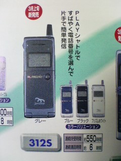 そのときに通信会社(当時NTTPersonal)からもらったサービス内容のチラシだったのでしょう。ちなみに、弟が使っていたのが画像にある「312S」のグレー。私が同じモデルのブラックでした。シルバーとブラックのツートンカラーで、これに赤いストラップなぞして、モバイル・マーケットが今より小さかった時代にしては洒落た使い方だった・・・かどうか。