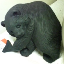 実はコレ、墨で出来ており、消臭効果とマイナスイオンのリラックス効果があるとか。あらまぁ、ハイテクだったのね…と感心。世の中、色んなコトを考え出す人がいるもんだなぁ、としみじみ思ってしまったワケですが、ところでこの熊、なぜか若干前足が突出しているような気がしまして、“モデル立ち”みたいです。(了)
