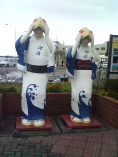 しかし、佐渡と言えば、金山とたらい舟、そして寒そうなイメージしかなさそうですが、なかなかどうして、こちらは夏は海水浴、冬はウインタースポーツ。釣りは年中楽しめるし、当然海産物は最高の鮮度。いいトコロじゃないですか。って私、実際プライベートでも過去に二回旅してます。古い武家屋敷やら能の文化(世阿弥が島流しにあったところですからね)も大切に受け継がれ、自然と芸能の宝庫でした。鬼太鼓も有名。いやぁ、見所満載、とかいいつつやっぱりおけさのポーズ、しっかり押さえちゃうんですけどね(人形ですが)。