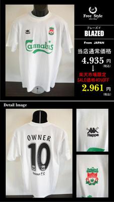 すんごいものを見つけました!!【BLAZED】ブレーズド TAIMA FC 10 Tee商品紹介に、『誰もが一度は見た事のあるカールスバーグ&リヴァプールモデルのプリントTeeです!!』と書いてあります。でも、明らかにパチモンじゃん!!『OWEN』じゃなくて、『OWNER』って・・・。そのうち、『8番ジェラード』じゃなくて、『8番ジェラート』なんてベタな事しそう。。。でも、発音が似てるだけで、スペルはあんまり似てないからだめかな・・・(GERRARDとGELATO)。やば、ちょっと欲しくなってきました。。。