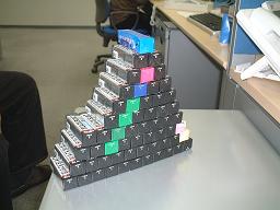 会社での年末大掃除にて。これが何だか、分かりますか???会社で食べたガムの残骸です。こんなに食べて、お母さん、私はこんなにも大きくなりました。そんなガムの抜け殻を集め続けて、糊でピラミッドを作っていました。・・・なんて暇な人なんでしょう。ピラミッドをどこまで大きくできるか、自分への挑戦です。しかし、年末を迎え、こいつが処分されることが部署内で決定されました。悲しいですが、仕方ありません。見るも無残。さようなら、2007年。さらば、思い出。