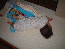 このブログでも書いてきましたが、うちのボウはほんっとに寝相が悪いです。今回は、その証拠を押さえました。まずは、、、普通じゃない?って思ったあなた。甘い。うちのボウを侮るなかれ。よーく見てください。お腹が出てますねぇ。でも、今はそんなこと問題ではありません。もっと、よーーーく見てください。気が付きましたか?足元に枕があるでしょ!?そうなんです。つまり、この狭いベビーベッドでも180度回転したってことなんです!!その被害を被ったものたちは、、、このおもちゃたちです。義妹が心を込めて作ってくれたというのに、ボウは。。。人気ブログランキングへ←クリックをお願いしますっ♪トップページへ