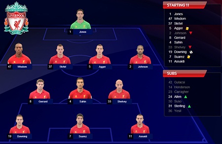 Liverpool 1 - 0 Anzhi Makhachkala UEFA Europa League 2012/10/26 20:05 Anfield, England Referee: Bas Nijhuis Liverpool 1 Brad Jones 2 Glen Johnson 5 Daniel Agger 37 Martin Skrtel 47 Andre Wisdom 4 Nuri Sahin 8 Steven Gerrard 19 Stewart Downing 33 Jonjo Shelvey 7 Luis Suárez 11 Oussama AssaidiAnzhi Makhachkala 1 Vladimir Gabulov 4 Christopher Samba 5 Joao Carlos 6 Mbark Boussoufa 7 Kamil Agalarov 14 Oleg Shatov 16 Mehdi Gonzalez 18 Yuri Zhirkov 21 Georgi Gabulov 9 Samuel Eto'o 20 Fyodr SmolovGoals Liverpool (1) 53min Stewart Downing Anzhi Makhachkala (0)Substitutions Liverpool (2) 46min Raheem Sterling for Glen Johnson 80min Joe Allen for Jonjo Shelvey Anzhi Makhachkala (3) 61min Arseniy Logashov for Kamil Agalarov 64min Lacina Traore for Fyodr Smolov 77min Shamil Lakhiyalov for Mbark BoussoufaYellow cards Liverpool (2) 75min Luis Suárez 81min Daniel Agger Anzhi Makhachkala (2) 21min Christopher Samba 43min Kamil AgalarovRed cards Liverpool (0) Anzhi Makhachkala (0)Shots on target Liverpool (7) Anzhi Makhachkala (3)Shots off target Liverpool (7) Anzhi Makhachkala (3)Blocked Shots Liverpool (2) Anzhi Makhachkala (5)Corners Liverpool (5) Anzhi Makhachkala (3)Fouls Liverpool (9) Anzhi Makhachkala (15)Offsides Liverpool (2) Anzhi Makhachkala (0)Passing Success Liverpool (87.1%) Anzhi Makhachkala (79.8%)Tackles Liverpool (20) Anzhi Makhachkala (35)Tackles Success Liverpool (75.0%) Anzhi Makhachkala (77.1%)Ball Possession Liverpool (59.2%) Anzhi Makhachkala (40.8%)Territorial Advantage Liverpool (48.9%) Anzhi Makhachkala (51.1%)Total Passes Liverpool (566) Anzhi Makhachkala (381)Total Crosses Liverpool (13) Anzhi Makhachkala (12)Lost Balls Liverpool (152) Anzhi Makhachkala (148)Recoveries Liverpool (73) Anzhi Makhachkala (63)Sub not use Liverpool (5) 42 Peter Gulacsi 23 Jamie Carragher 14 Jordan Henderson 30 Suso 36 Samed Yesil Anzhi Makhachkala (4) 22 Evgeny Pomazan 3 Ali Gadzhibekov 13 Rasim Tagirbekov 17 Sharif Mukhammadダウニングがすばらしいミドルでチームを救ってくれました!!エトーを抑え、クリーンシートを守ったのも大きいですね!これで勝点6で、アンジを抜いてグループA首位に立ちました!!順調、順調。YNWAリバプール12/13(H)リバプール12/13(A)ピンバッジセットカフリンクスポンチョ ビーチタオル7,690円(税込)7,690円(税込)4,800円(税込)3,000円(税込)3,690円(税込)当サイトの画像・文章などすべてにおいて、無断転用・転写は固くお断りします。