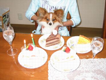 をしました。 ワンホールのデコレーションケーキにしたかったのですが、子供達の要望で個別オーダーのケーキに!(何かショボイ気がするんだけど) テーブルに料理が出てくる前にランディも参加