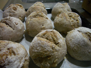 おはよう (*^0^*)今朝もとっても良いお天気♪はなチャンの調子も昨日よりも今日の方が良いみたい!さっき、旦那とお散歩に行きました。もしかして早朝の散歩が嫌いなはなチャン、仮病???動物も、たいした事ではないのに、飼い主さんが「大丈夫?痛くない?」など、大げさに心配してしまうと「アタシって病気なの???」と勘違いしてしまうそうです。我が家のはなチャンも・・・・!?今朝のバラもザ・カントリーマン 香りが少ないのが残念!春の花弁はもっと細長く菊の花のような花弁なんです。ラベンダー・ドリームの近くに植え込んであるけど、同じ様な花色なので面白みにかけます!失敗しちゃったかナ~(>0<)パン教室 フォカッチャとピタパンです。フォカッチャはオリーブとハーブの2種類♪岩塩を多目にふりかけました。食べる前は多かったかな~?と思いましたが、試食すると、そんな事は全然無くて、まろやかな味わいで、とても美味しかったです♪ハーブの方が私の好みでした(^^♪ピタパンはベーコンエッグとレタスを入れて朝食にします! プレーン、紅茶のスコーンです。紅茶はTパックを使用。ベーキングパウダーは使わず、天然酵母を使いました。とっても香りが良くて、美味しかったヨ♪どれも美味しいの連発だけど、本当に美味しかったの(*^0^*)パン教室も後3回で終わっちゃうの!チョット淋しいナ~ 人気ブログランキングに参加していますクリックの応援お願いします(*'‐'*)