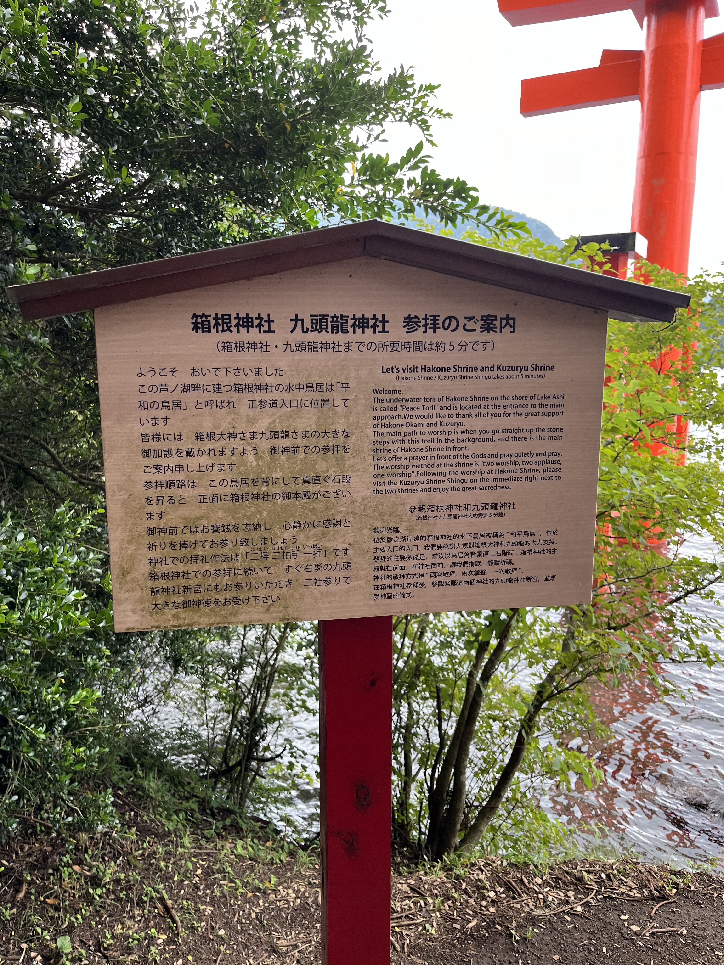 箱根神社の名所の一つであり、芦ノ湖湖上に浮かぶ「平和の鳥居」 は