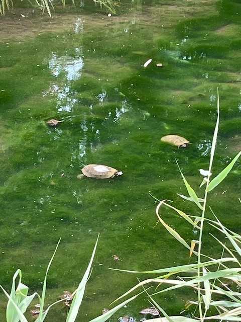 亀の夫婦でしょうか? 涼しそうです。🎐