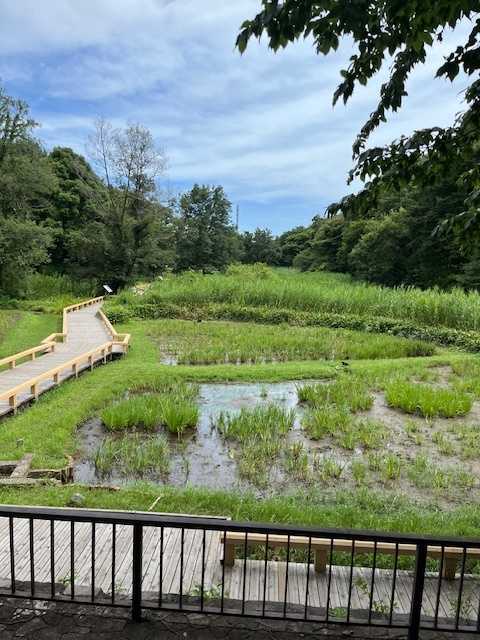青渭神社を後に、深大寺東参道を歩いて行くと参道付近に水生植物園があります。 深大寺や周辺には湧水があり、池や小川もあり自然が豊かな土地です。 少し散策して行きます。