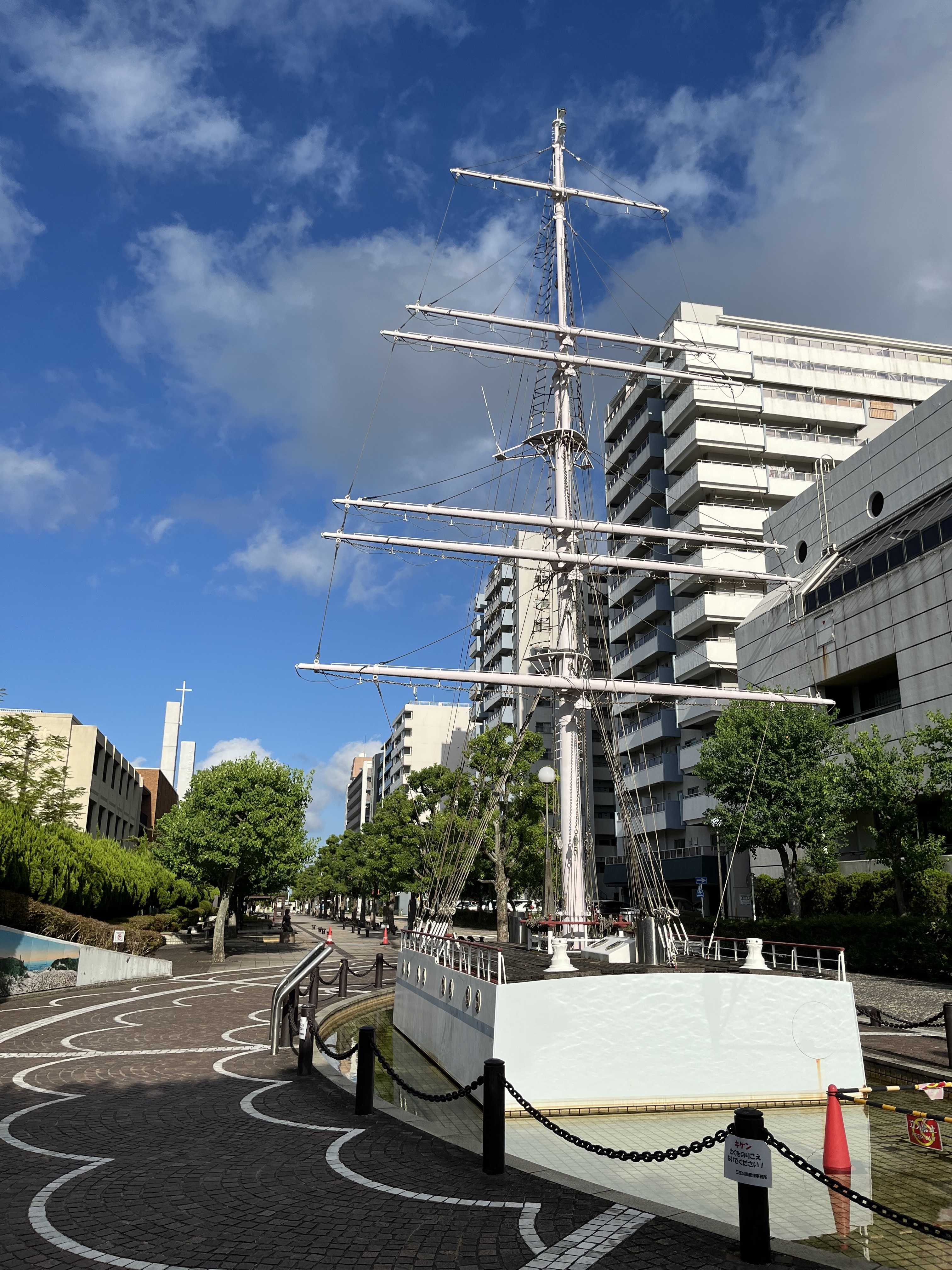 このモニュメントは、日本丸のメインマスト部分の1/3のスケールで再現した日本丸です。