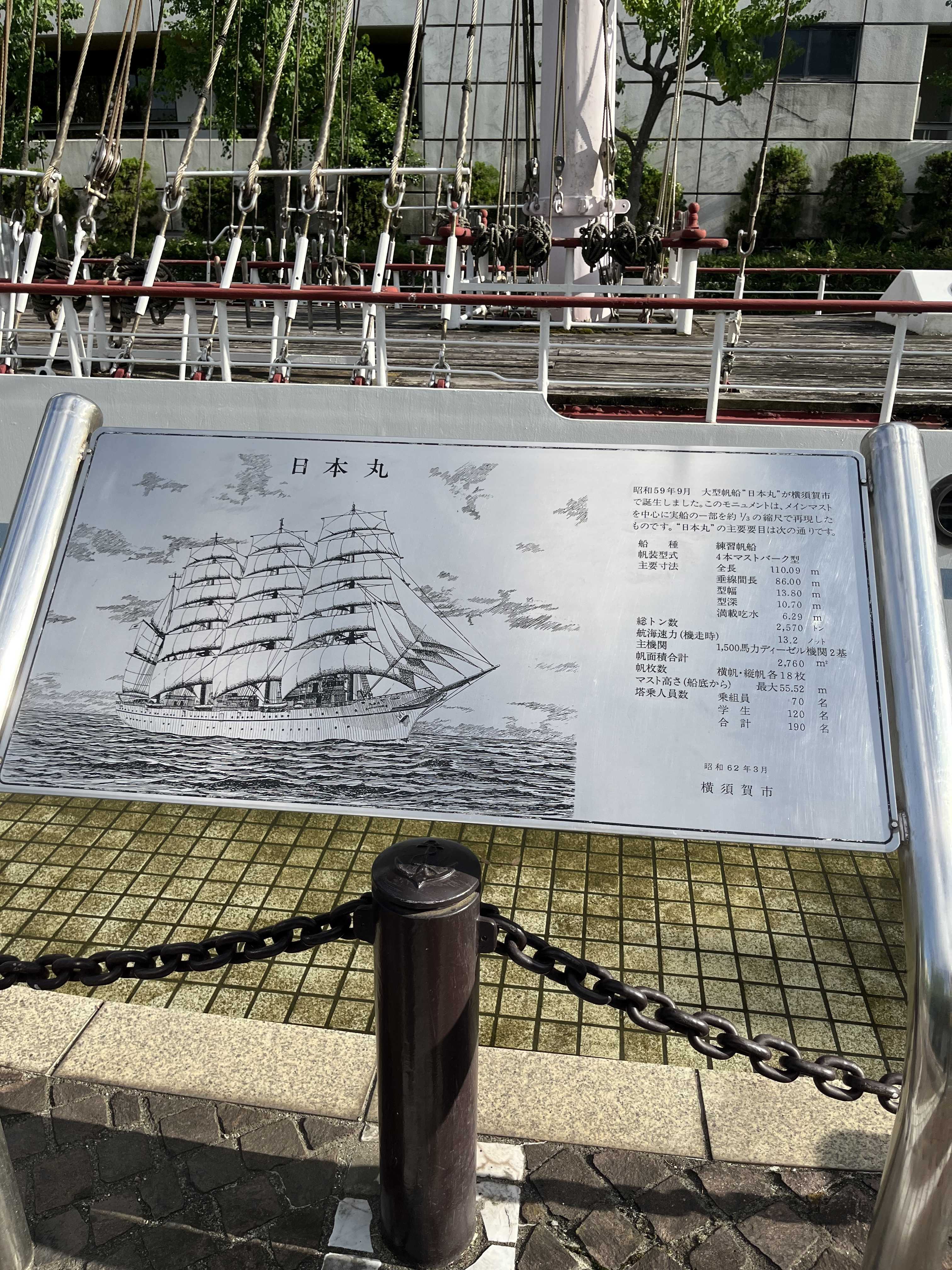 大型練習帆船「日本丸(二代目)」横須賀市にあった住友重機械工業浦賀工場で造られました。