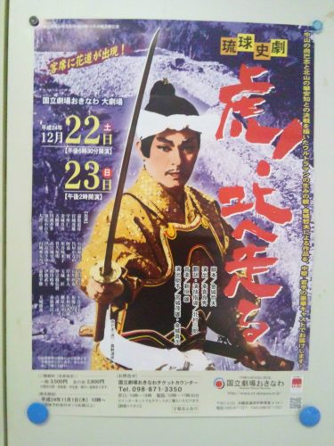 ポスターが出来たので再び宣伝。12月22日(土)18時30分開演12月23日(日)14時開演 昨日全体稽古を見学することが出来た。国立劇場の稽古場なんてそうそう入る機会がないし、稽古の雰囲気に引き込まれあっという間に2時間経ってしまった感じである。演出の幸喜良秀氏は言うまでもなく沖縄演劇界の第一人者であるが、自分のイメージよりも役者ひとりひとりの工夫と提案を通じて、全員で劇を生み出していくという方針であり、非常に和やかであった。本番直前になったら分からないけれど。 幸喜氏だけでなく知り合いの役者などにも意見を聞くことができた。沖縄芝居に経験豊富な意見は大変貴重だった。以下ここでメモ程度に書く。金城の芝居、特に「虎北へ走る」の特徴は「慌ただしいこと」である。沖縄芝居というより映画のスピードだ。それを上手に再現しなくてはならない。従来の芝居に比べると「心理」に重きを置いている感じがする。男たちの心理の駆け引きが特徴。当時の観客には「センセーショナル」な(どぎつい)感じがしたのではないか。金城の作品の「民・百姓」は、復帰前後の県民に対する金城の思いと重なっていると思う。 その他、この作品をはなれて、幸喜氏や国立劇場おきなわ常務理事 宜保栄治郎氏に伺った金城哲夫の思い出話も非常に貴重だった。それらについては改めてまとめるが、今回特に驚いたのが金城哲夫と古堅宗憲に接点があったという事実である。古堅宗憲といえば復帰運動のリーダー的存在であり、大江健三郎『オキナワノート』の中心人物である。金城、古堅ら在京のウチナーンチュは「しし(志士?獅子?)の会」を1963年頃結成しており、在沖の幸喜氏らと交流していたというのである。これはこれまで私の知る資料には一切ない情報である。 また晩年の金城は「いつも泣いていた」が、決まって「宮城みのる」(漢字も詳細も不明)という人物の所だった。 復帰直前、反復帰の幸喜氏らと、復帰推進の金城は対立していた。金城は死ぬまで自分の役割を「大和と沖縄の架け橋」と考えていた。復帰後の失望感は、復帰推進の金城の方が重かったであろう。 劇団「潮」は実質金城がいるから成り立っていた劇団だった。 少なくとも沖縄時代の金城について現在明らかになっているのはほんの一部であると改めて実感した。こんどまた稽古を見に行った時に、聞いてみたい。