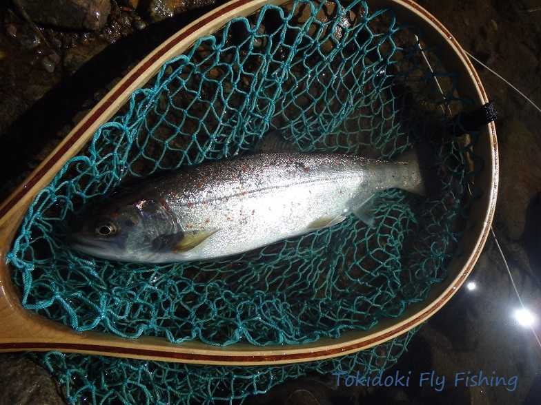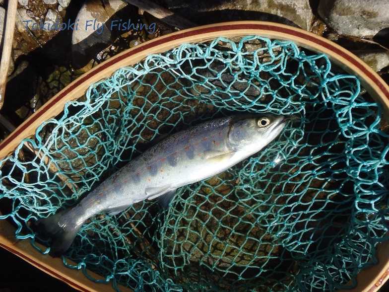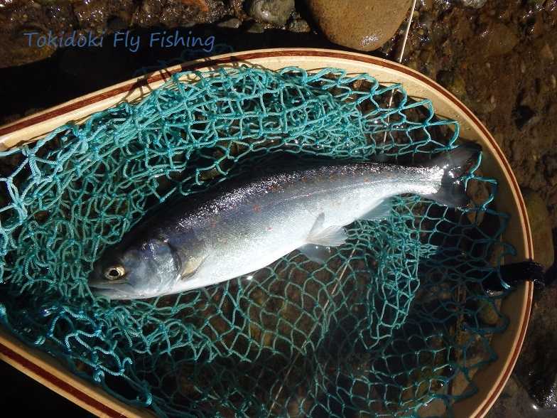 ところが2時間ほどは全く反応してくれず、フライをあれこれ変更して今日はボかもと思った頃にようやくヒットしました。