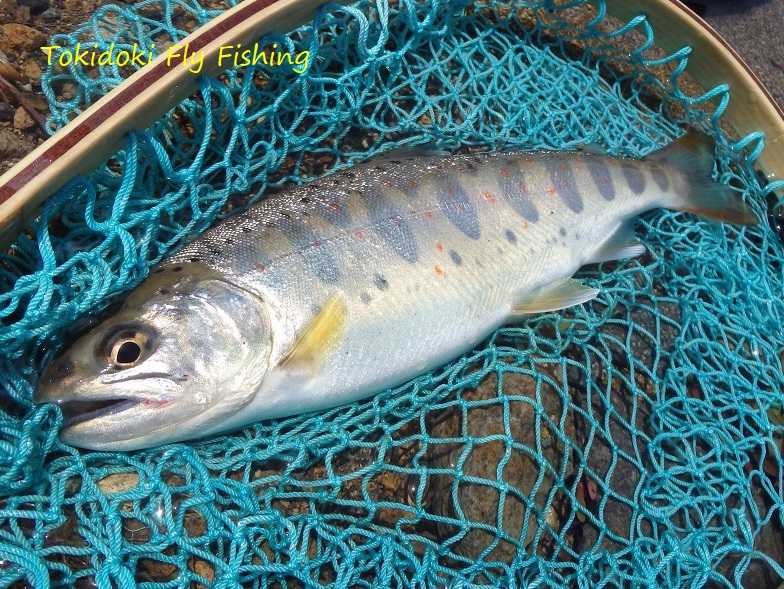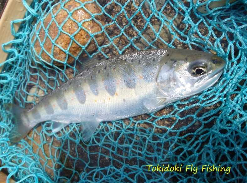 午後はそのプールの流れ出し落ち込みでライズを見つけてフライをキャストすると・・・。