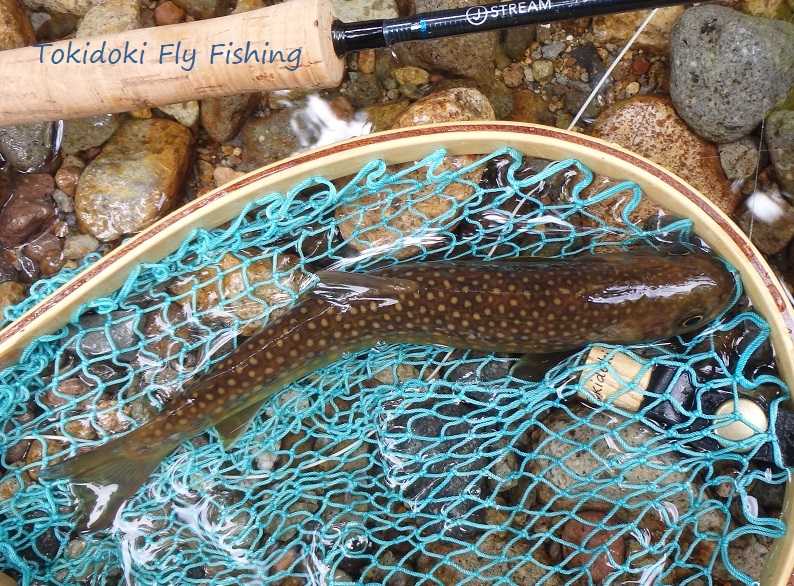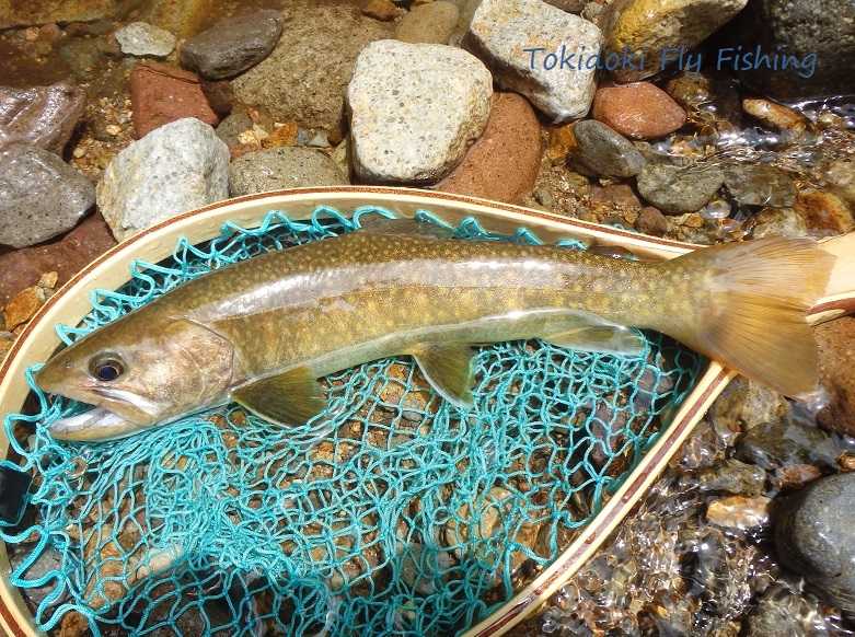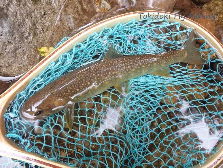 これは頂きと思ってフライをキャストすると、一瞬フライが見えなくなって直ぐにヒットしたのでネットで掬ってみたら・・・。