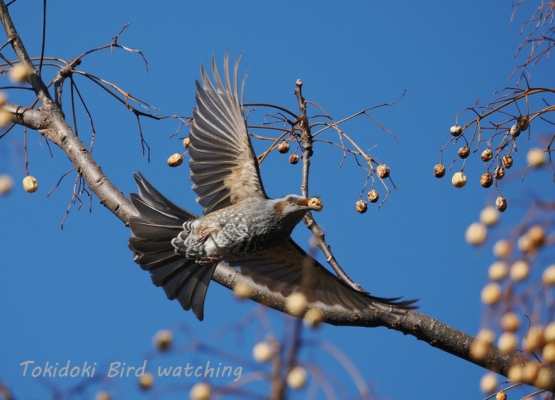 この公園はセンダンの木が多くて、小鳥が食えないようなデカい実でも食えるヒヨドリは圧倒的に多いです。