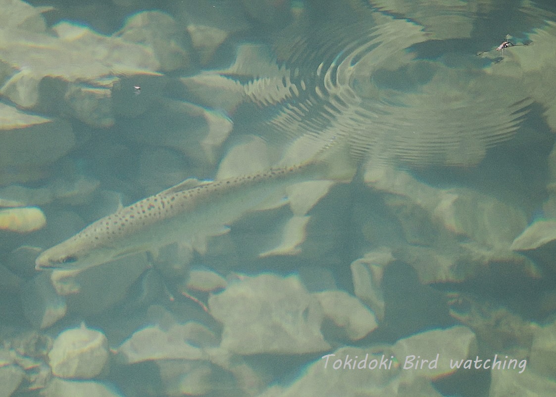 大幅に水量が増えてアマゴは健在だったけど、アメンボ(写真右上の波紋の主)は食わない?