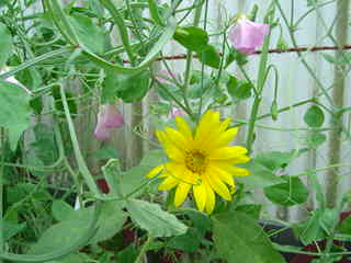 って・・今日から9月なんだよね(^▽^;)遅すぎ?お兄が学校から貰ってきた ひまわりの種 初めは発芽するのかもわからない状態だったんだけど、なんとか無事花咲かせてくれました スイートピーにまとわり付かれてます 笑二つとも細いし小さい(p_q*)シクシク折れなきゃいいんだけどぉ・・……(-。-) ボソッで、ロシアひまわりは未だ咲かず。多分そろそろじゃないかと??? あと・・・コレは一体なんだろう?塀の下に植えてるマリーゴールドのところにあったので鉢に植えてはみたんだけど???2つあって2つとも同じ鉢に入ってるんだけど、1本だけ凄く延びてきた。でも・・・これって???もしかして隣にある木?だったら困る(w_-; ウゥ・・