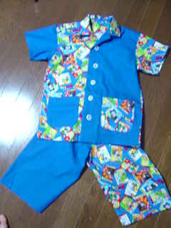 結構前からお兄に頼まれてて 一緒に生地買いに行ったんだけどなかなか作るに至らず(;^。^A アセアセ・・昨日から作り始めて 今日出来ました。(家事&花やりながらなんで時間がかかってしまった 笑)本当は全部ドラゴンボール生地にしてあげたかったんだけど、予想以上にお兄伸びてて急遽 青無地と半分にしました。出来上がって早速お風呂上りに着てましたよ。なので画像ボケてしまったんですがコレしかなかったヾ(;´▽`A``アセアセ明日は藍蘭のパジャマ作って~との催促が・・・・