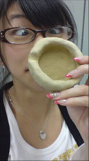 ある器を粘土を使って作りました☆持ってるのはスタッフさんが作ったやつだからね!!!あたしのほうがもう少し上手くできてると思う(>д