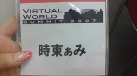 今から『バーチャルワールドサミット2007』というでっっっかい会議に参加してきます!!!周りはみーんな会長さんか社長さんみたいな…(@_@)!!何であたしが参加しているかというと、『バーチャルワールド・セカンドライフ時東ぁみツアー』で、アバターでツアーに参加するみなさんと一緒に、バーチャルワールドの世界をまわるの☆たくさんの偉いかたちの前で生でツアーを見せるってこと★サミットだから失敗できないしドキドキするぅ(>д