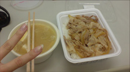 2回目のイベント会場に着いたよん☆ってか、お腹すいたー(+_+)まだ何も食べてなかったよ^^;この会場来るときに松屋を発見したから大好きなセット豚豚セット食べまーす\(~δ~)/前にブログにあげたんだけど、今ハマってるご飯なの★これで、『元気100倍アンパンマン』だわぁ(o^-’)b二回目はこのメガネでいくね♪♪♪