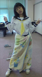 次はコレ!!!初めて着ました☆ 『スクールランブル』の主人公塚本天満ちゃんです★テーマソングを歌わせてもらってたのに、コスプレをしたことがなかったの(^^ゞ本物はメガネかけてナィけどね^^;そして、このまま大抽選会♪d(⌒〇⌒)b♪ポスター・ワイングラス・衣装いろいろだしてみました★当たったみなさんおめでとうございます\(~δ~)/飾ってくださーい☆次の衣装はなんでしょ~???(^O^)