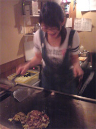 舞台の帰りにお好み焼き屋さんに来ました☆ここはつんく♂さんがプロデュースしている『かりふわ堂』ってとこ★新宿コマ劇場の裏にできたんだ♪♪スタッフさんの間でもおいしいって評判なの(o^-^o)知ってるスタッフさんもいて、特別に焼かせてもらっちゃった=^ェ^=まぁ、画像を見てわかると思うけど見事に失敗しました^^;(笑)失敗しても味は変わらないからね(o^-’)bよーし!!食べよーっと★