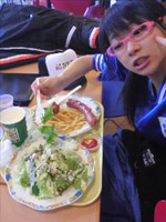 場所を移動してまずお昼ターイム♪♪♪今日はたくさんの先生がいるの>^_^<校長先生役の保積ぺぺさんや山吹先生役の松田沙紀さんレックス先生役のジリ・ウ゛ァンソンさんも☆みんな優しくて撮影が超楽しいよん★お昼を食べてちょっと待ちがあったんだけど音尾さんが寝てる!!!誰かが『ヒゲはえた子供みたい』って言ってた(≧▽≦)(笑)マジうける!!!!!(笑)