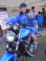 バイクが展示してあったから乗ってみたぁ☆バイク乗ってるってゆーか、バイクに乗せてもらってるって感じ^^;本当は車もバイクも免許ほしいんだけど、方向音痴だからもー少しやめとこーっと(>_