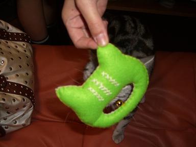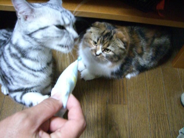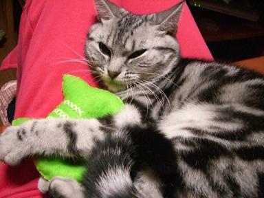 今日は、ネココロリのココヤム店長さんの悟空座布団をご紹介!!購入したのは、ガキンチョシリーズのチビサイズ。ひよこ柄です。またたび粉たっぷりの綿を使った、猫ちゃん専用のケリケリおもちゃ、鈴付き。では、早速、「ネコども~、集まれ!!!初、悟空座布団だぞぅ~。」ニャンだろう・・・くんくん。ジーコしゃんは何をしているんですか??こりゃ、いいニャン♪カップ、ガッブ。どれどれ。ん!?鈴が付いているにゃ~。カップッ。やめられない~。萌え~~!!カップ、ガッブ。。。けりっ、けりっ。猫キックだにゃん♪でも、足が届いてない。。。結局、お姉ちゃんジーコがあきらめて、モンが独り占め。最後には、遊び疲れてアゴ枕にしちゃいました。悟空座布団は、いろんな柄があり、サイズもチビから特大まであって、早速、もう一つ注文しちゃいました~(^-^)Vしかも、特大!!2ニャン分あるかな?到着が楽しみだなぁ~。なんて私が一番楽しんでる??「モンのしっぽってタヌキみたい。肉球から毛が生えてる。」って友達に言われた。ん~~~、長すぎるかな??ネココロリ