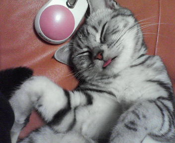 実は、ジーコは3匹目のネコちゃんです!だから、ネコにも色々な性格や性質があるのは知ってますけど、でも、「ジーコって変なねこ!」って思っていることが沢山あります!見てください!熟睡してるのに、舌が出てるんです!!起きている時も、寝ている時も、時々あるんです。。。たぶん自分でも気がついていないみたいです。「ジーコ」って呼ぶと、このまま振り向くんです。はじめは、口紅?血?なんか食べた?ってビックリしたけど。長いのかしら???でも、かわいいでしょ~